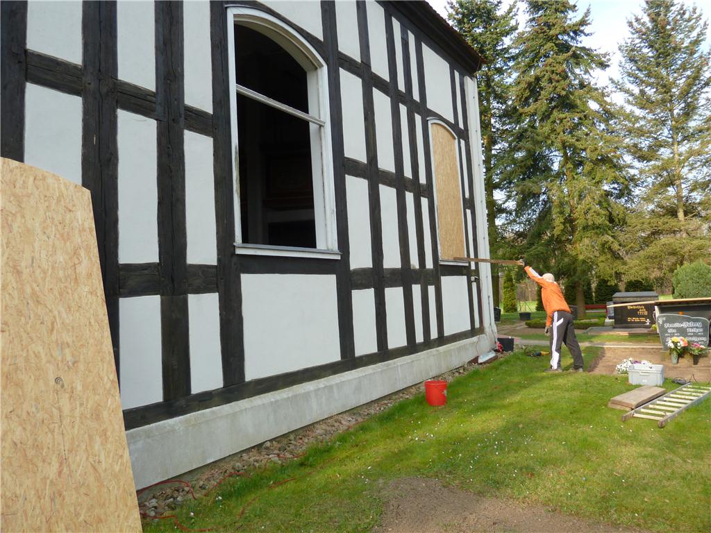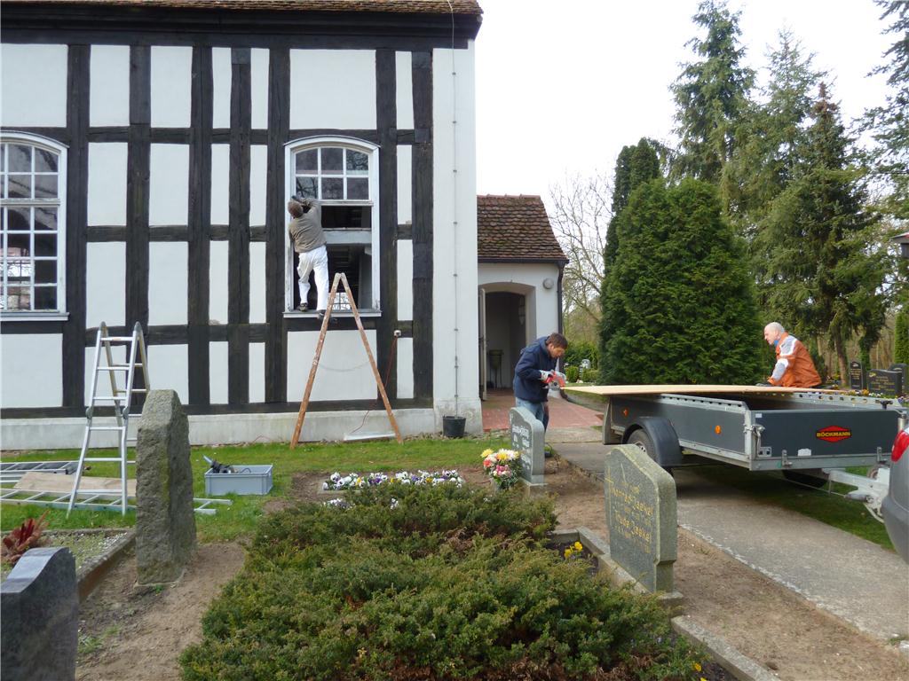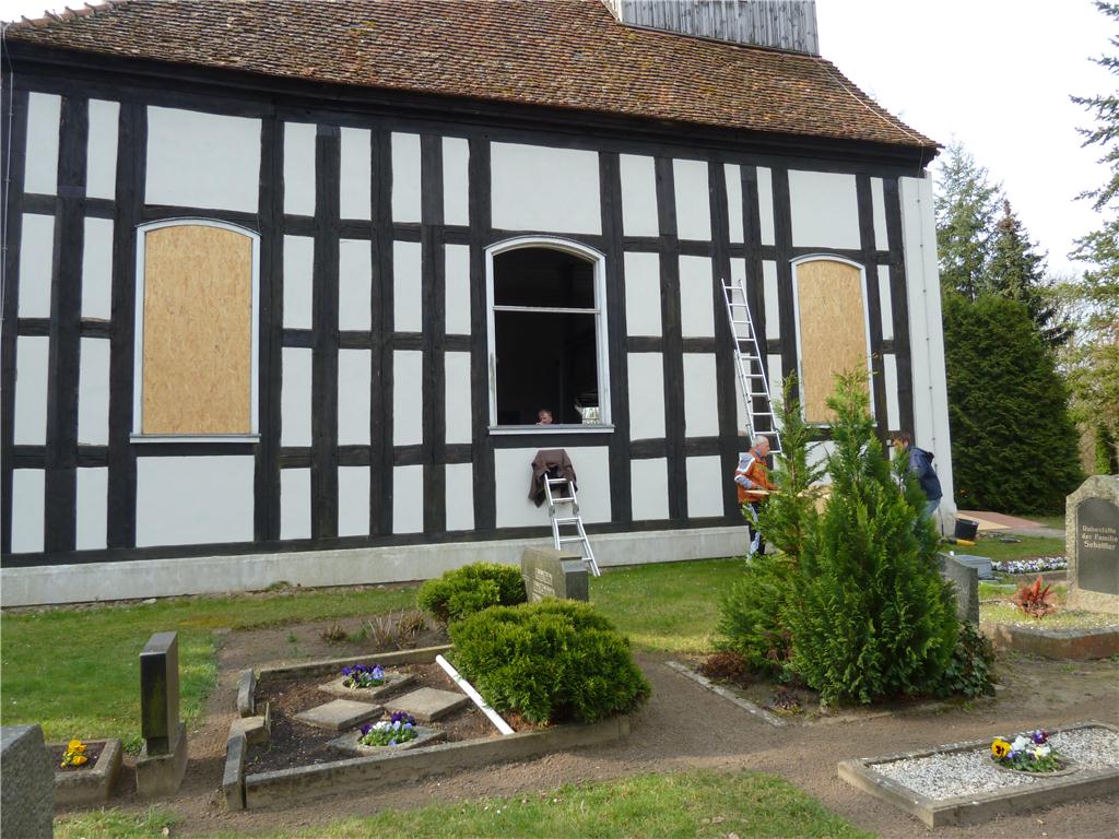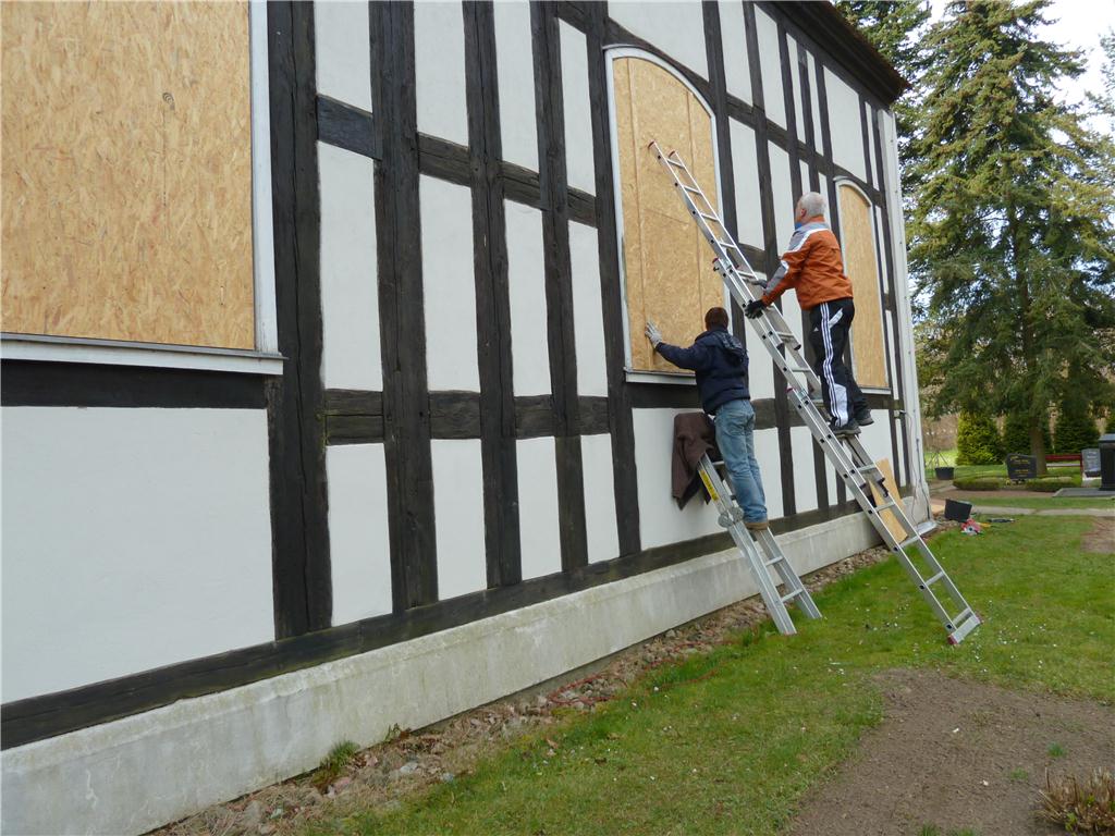 Fensterarbeiten an der Nordseite der Kirche