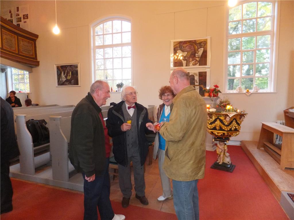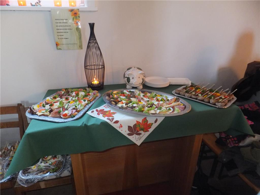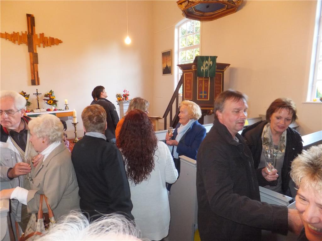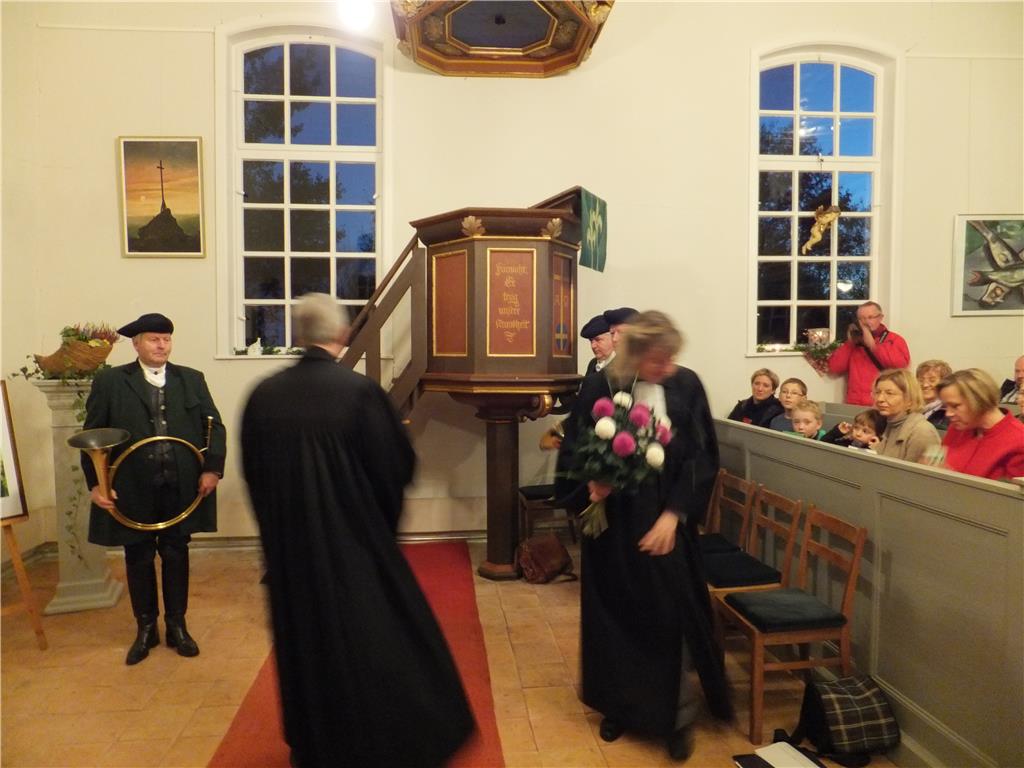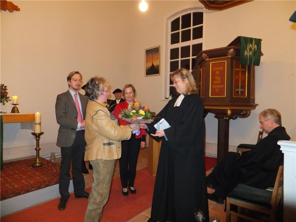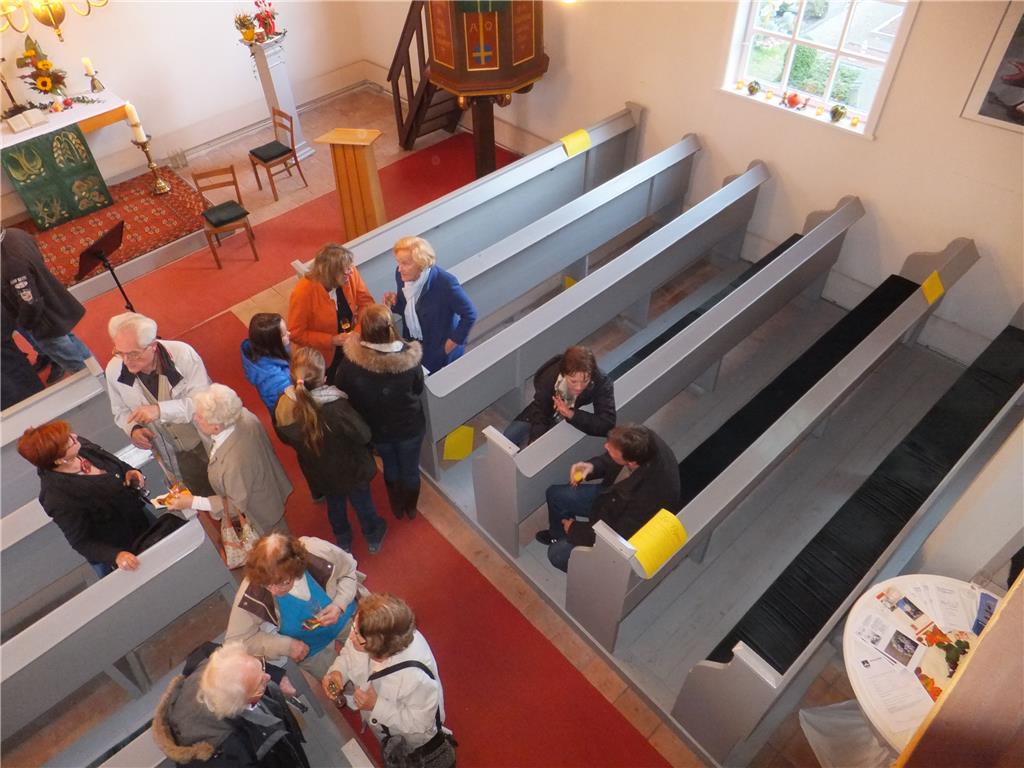 Es erwartet Sie heißer Kaffee oder Tee, ein deftiger Imbiss & kleiner Sektempfang zu Ehren unserer Pfarrerin Heike Benzin, die für ihr 15jähriges Dienstjubiläum im Pfarrsprengel Wustermark gewürdigt wird, in einer mit dem GRÜN der Wälder geschmückten Kirche.